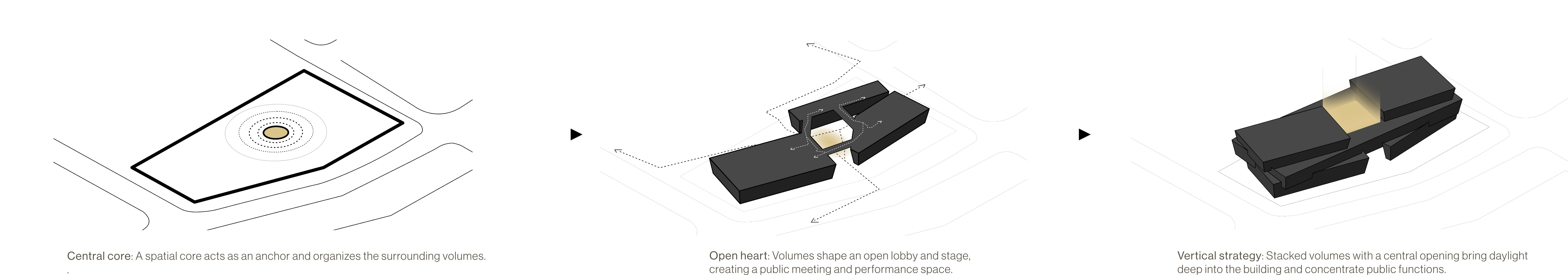 Through its materiality and volumetric hierarchy, the project seeks to create an active and accessible cultural building that contributes to the public life of Bjørvika.